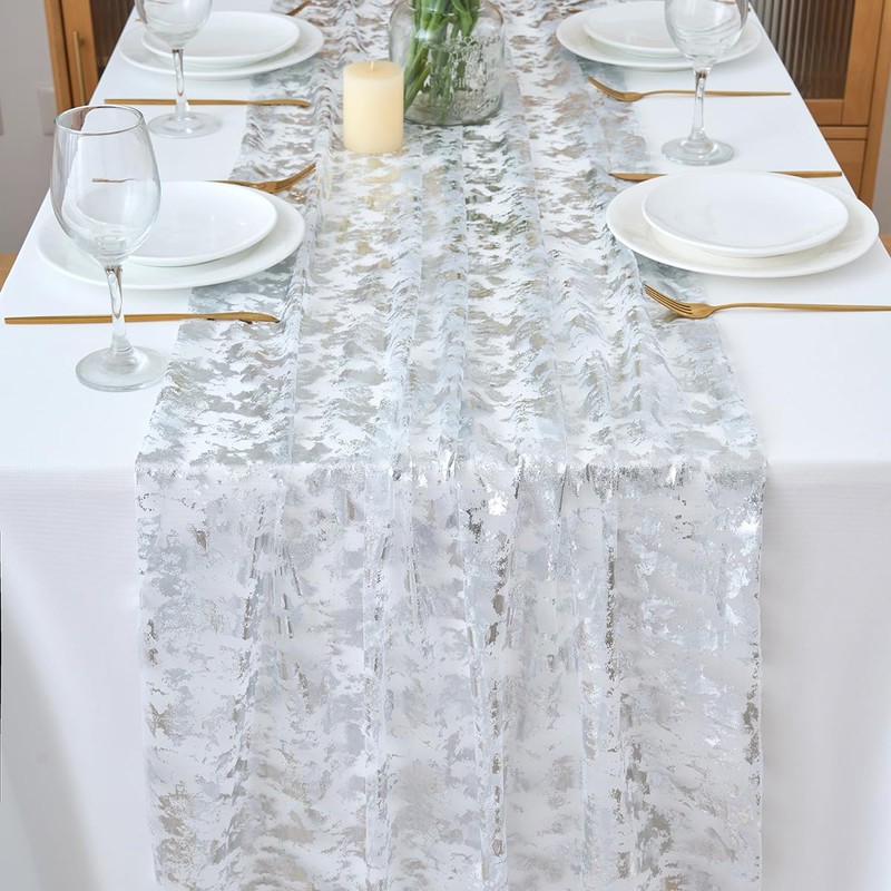 CHUQING Glitter Shimmer Chiffon Table Runner Wedding Party Table Decorations for Birthday, Thanksgiving, Christmas
