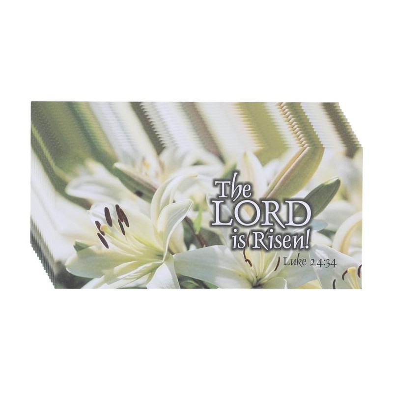 - Full-Color Easter-Themed Design Featuring beautiful Easter lilies and the scripture "The Lord is Risen!" from Luke 24:34, these envelopes capture the essence of the Easter season and inspire joyful giving.
