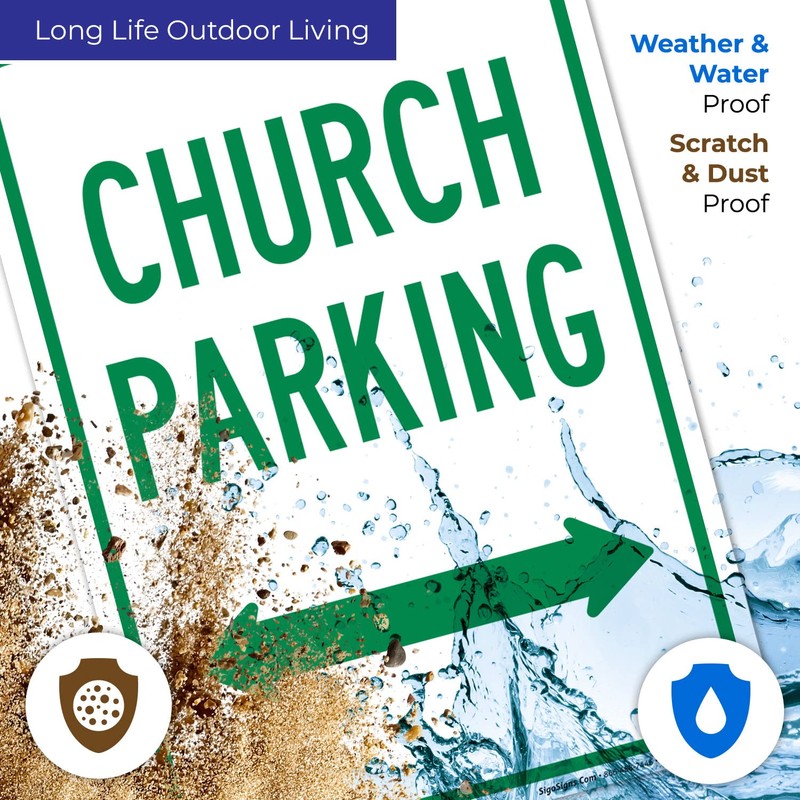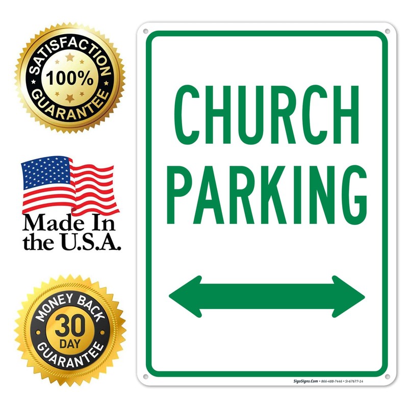 Church Parking with Bidirectional Arrow Sign, 10x14 Inches, Rust Free .040 Aluminum, Fade Resistant, Made in USA