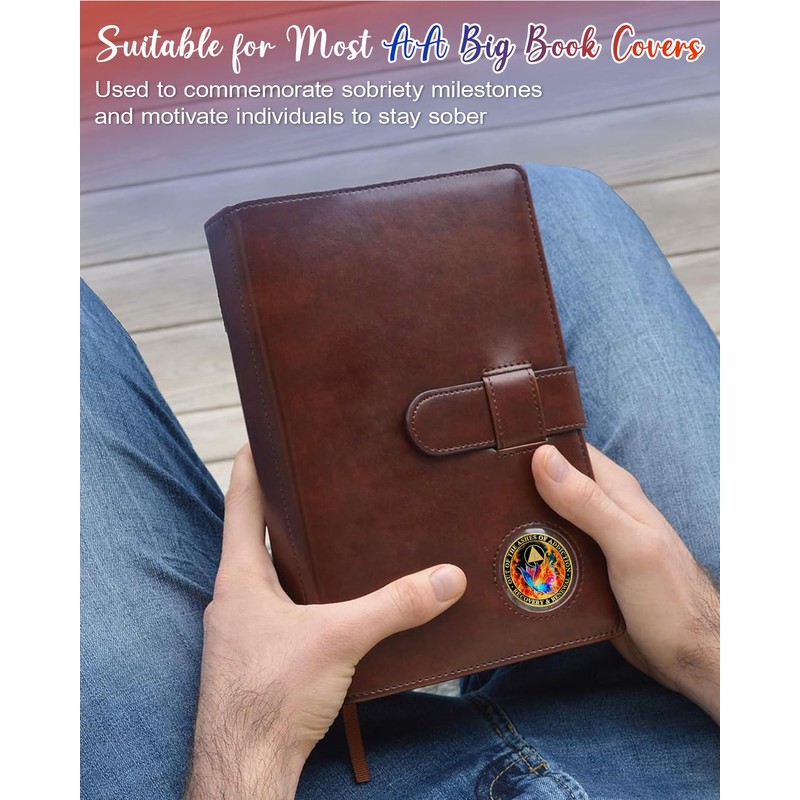 - Premium Quality & Easy to Carry: Made from zinc alloy with imitation gold plating, our AA coins are about 1.37 inches in diameter and 0.08 inches thick—just the right size to slip into your AA big book cover, pocket, purse, or keychain. This lightweight sober chip serves as a constant reminder of how far you've come, providing strength and support in the face of temptation or stress. It pairs perfectly with AA books and recovery workbooks, supporting you every step of the way on your journey