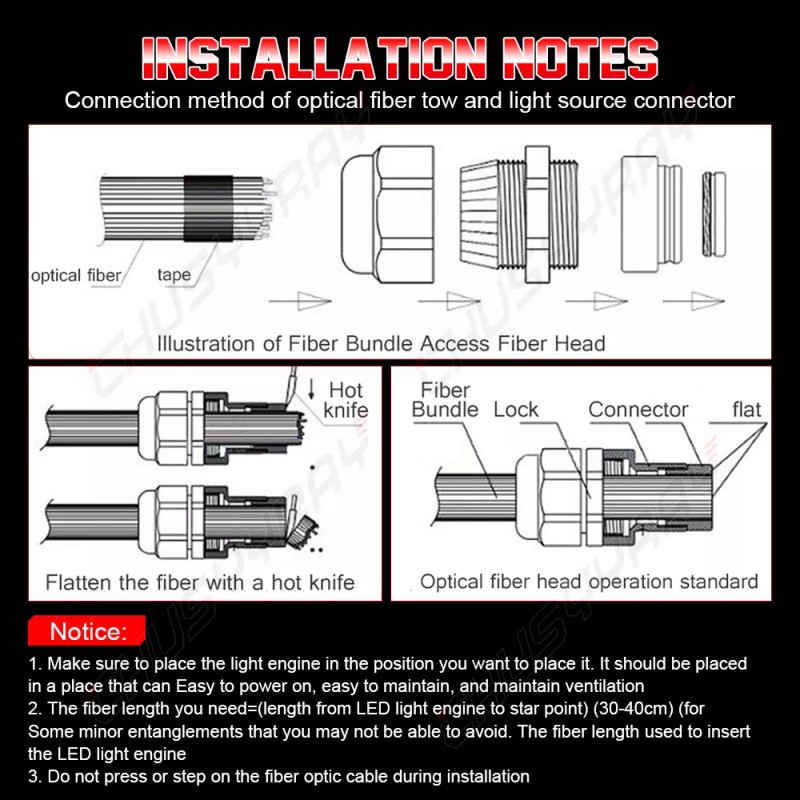 - Bulb Fitment Code: 300pcs fiber optic lights