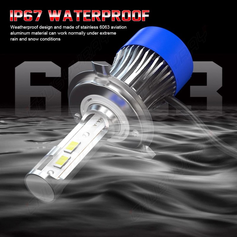 【Turbofan and Waterproof Design】The Bulb driver was built into the bulbs. The smallest heat system in the market, including cooling fan and cooling aluminum parts. 14,000 RPM high speed turbo fan will help the heat dissipation. In this way can ensure the bulbs lifespan last more than 50,000 hours. Our led headlight kit design IP67 waterproof. It can work underwater! Rainproof , it also shockproof. Buy it confidence.