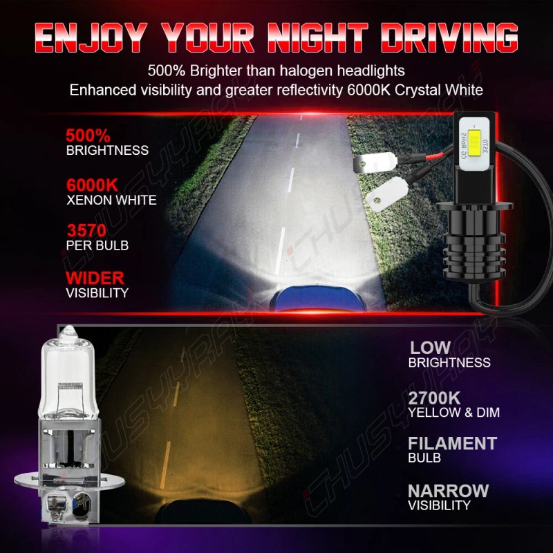 CHUSYYRAY 2x H3 LED Fog Driving DRL Lights Bulbs 6000K White Kit For 2004-2007 Saab 9-3