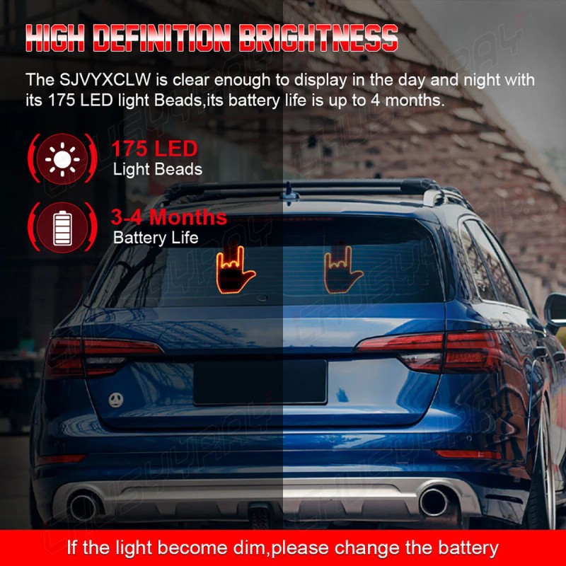 It is composed of 175 LED lamp beads. Gesture car gadgets are bright and clear enough for you to use in the day and night, to ensure that other drivers can clearly see Gesture gesture lights. This is a cool car gadget for drivers. Powered by three AA batteries (not included), it can be used for about 3-4 months and can stand by for 8.2 months (0.44 mA).