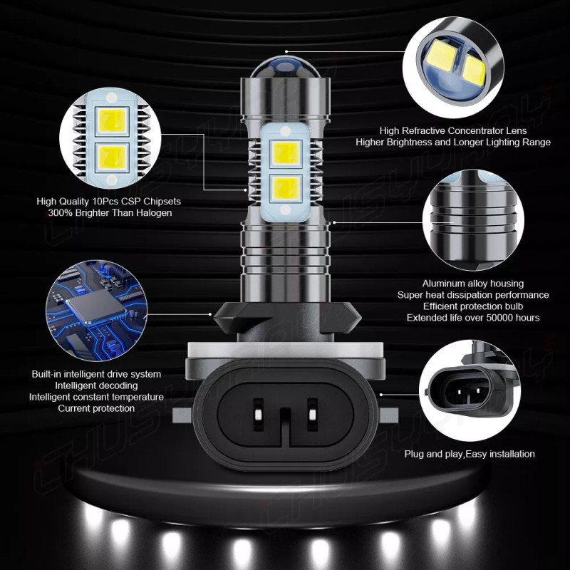 2PCS 880 LED Headlight Low Beam Bulbs