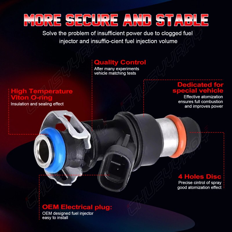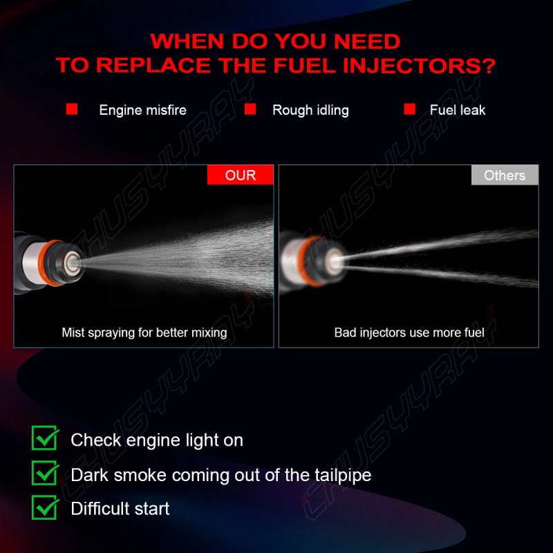 Enhanced Performance - Our fuel injectors are manufactured to the OE specification to provide factory-fresh appearance and direct-fit, that promote smooth engine operation and balanced fuel delivery reducing overall fuel consumption. No more miserable experience with misfires or poor gas mileage.