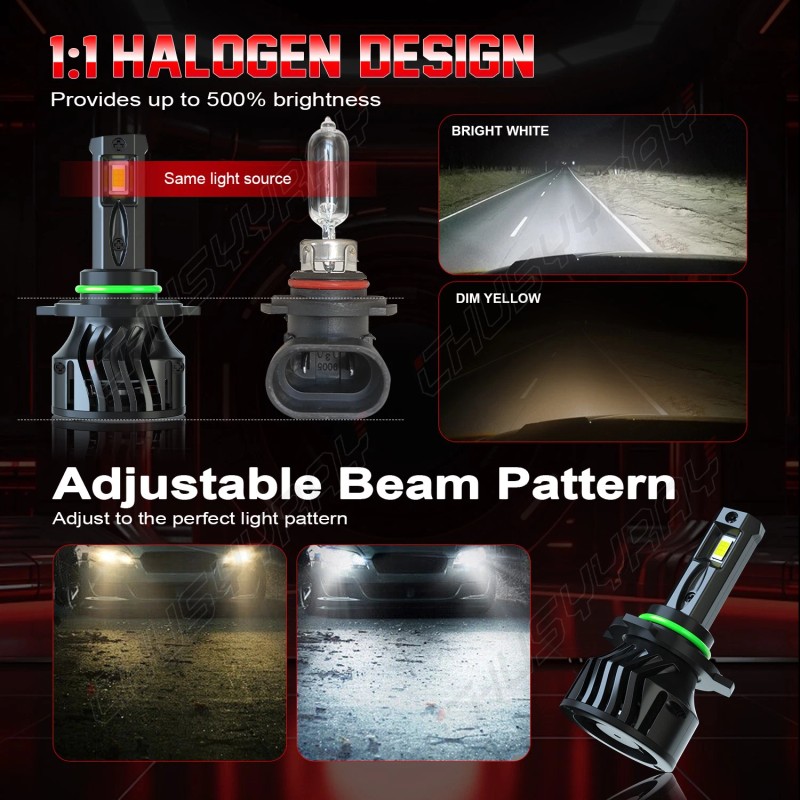 CHUSYYRAY A1 series led headlights light, Upgrade CSP LED Chips Light Source, it output 55W/bulb, 8000LM/bulb 6000K cool white LED light. 200% brighter than Halogen headlights. Light up your road but no blind others drivers. They have a perfect beam pattern without any dark spots or foggy light.
