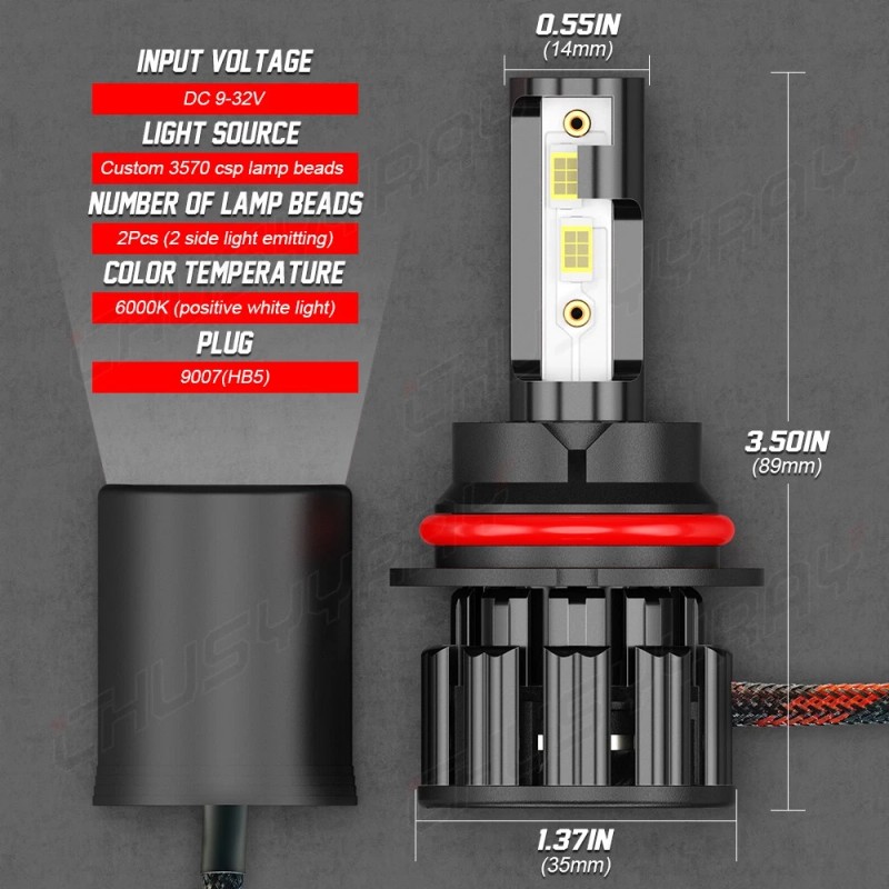 • HIGH BRIGHTNESS: Lastest CSP TX3570 led chips with 6000K cool white light ;300% brighter than your stock Halogen headlights. Z5 technology to ensure a perfect beam pattern without any dark spots or foggy light.