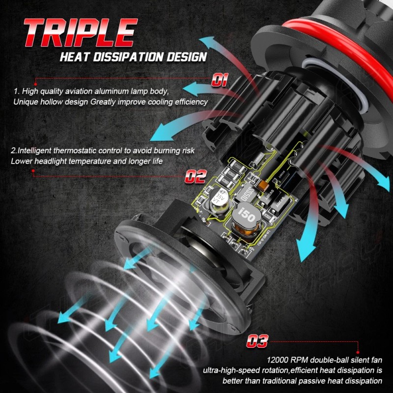 • Long Lifespan: Z5 led bulbs adopt whole aviation aluminum body, unique hollow carved heat sink design and 12,000RPM turbo cool fan provide super cooling ability, which ensures a longer lifespan up to 50,000 hours.