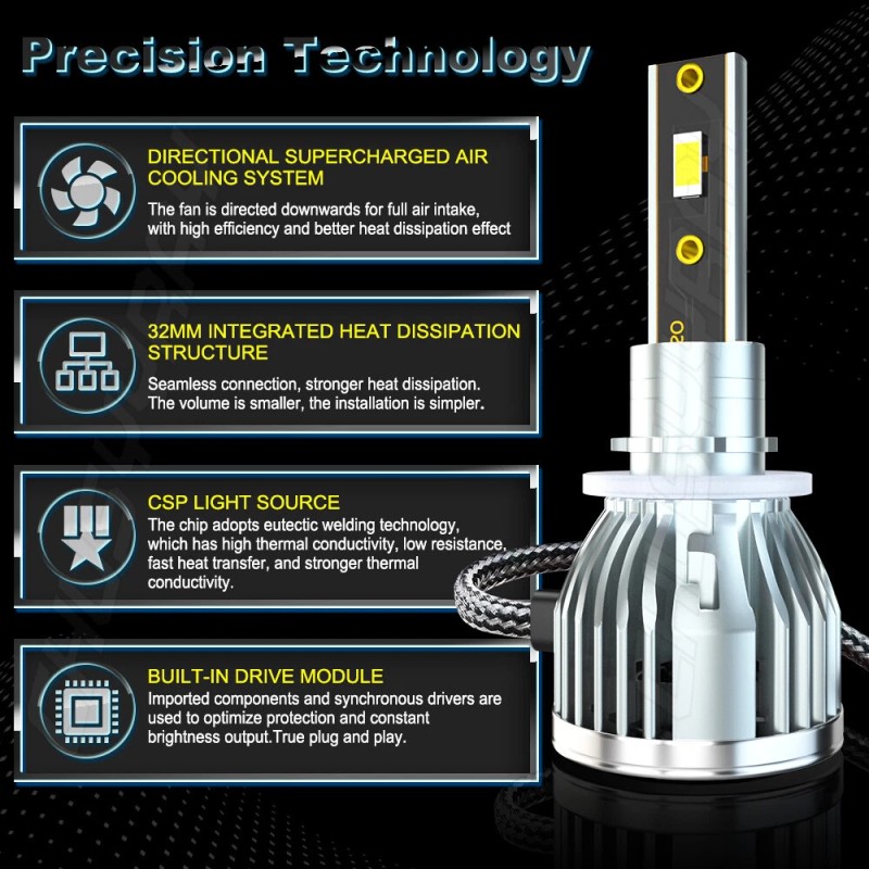 - More Bulb Size Available: 9003 9004 9005 9006 9007 9012 5202 880