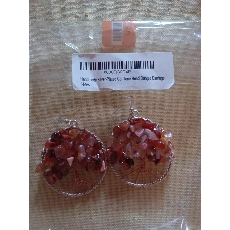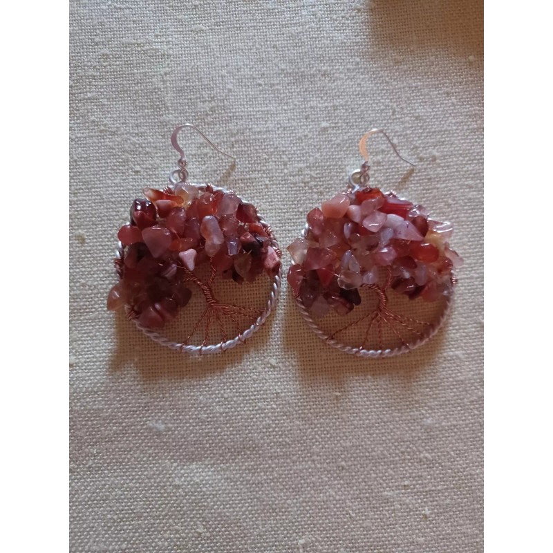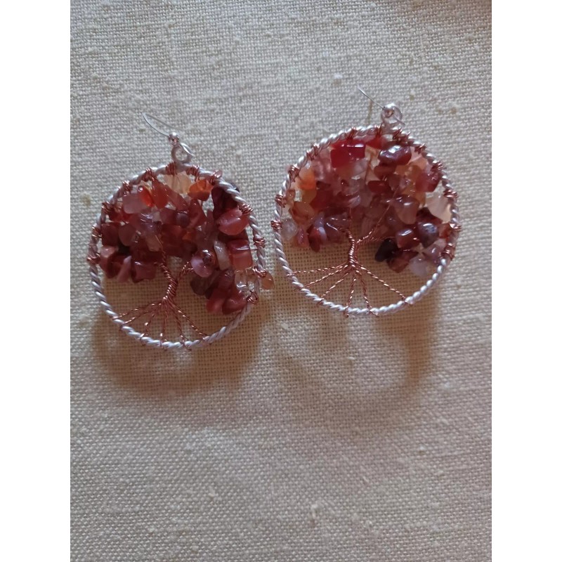 Chuvora New Chuvora Tree of Life Burgundy/Light Mixed Gemstones Dangling Earr...