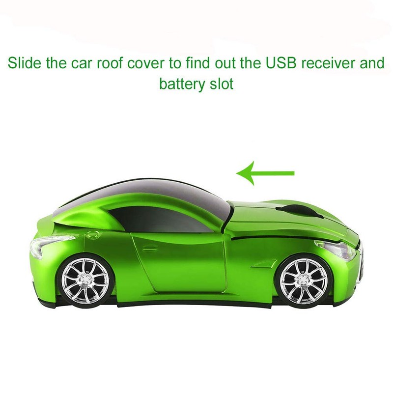 CHUYI Cool Car Shaped Wireless Mouse 1600DPI Portable Small Cordless Mice with USB Receiver for Travel Office Business School Home Gift (Green)