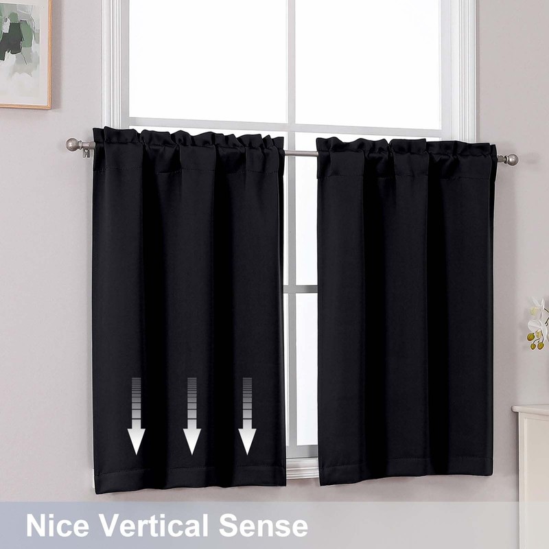 Chyhomenyc Short Black Out Curtains 36 Inch Length, Small Blackout Curtain Rod Pocket Half Window Curtains for Kitchen Basement Cabinet Camper RV Bunk, 2 PCS, Each 30" Wx36 L, Black