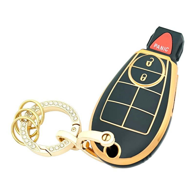 - STYLISH DESIGN: With luxury golden edges, this key fob case cover makes your key fob looks more fashion and beautiful. Added the bling rust-resistant keychain, your remote key will definitely be an eye-catching one.