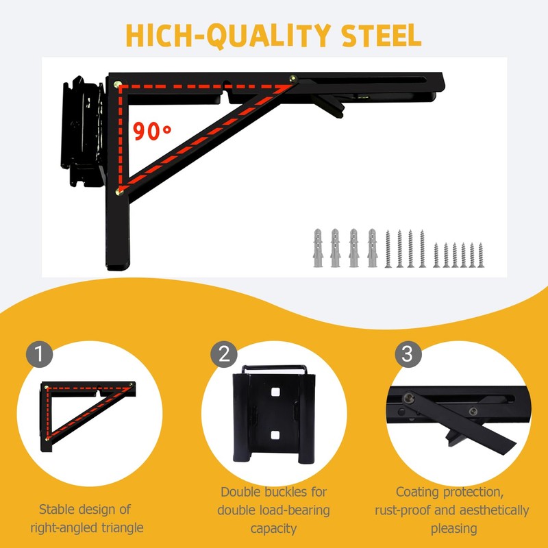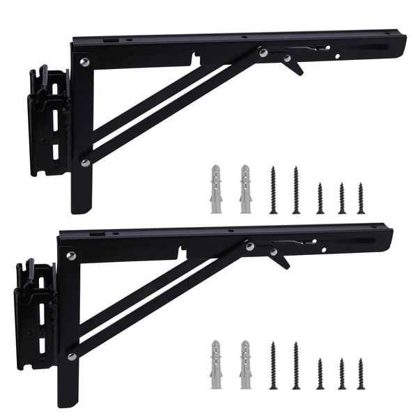 CHZHWFDC E Track Shelf Bracket - Durable Hinged Collapsible Table Brackets - Black Powder Coating E-Track Accessories for etrack Workbench Shelves (1 Pair of 2 Pieces)