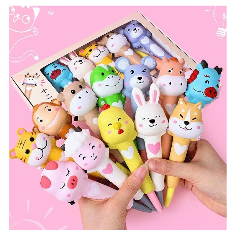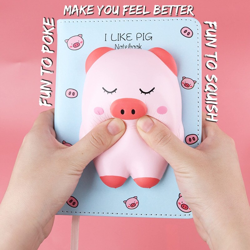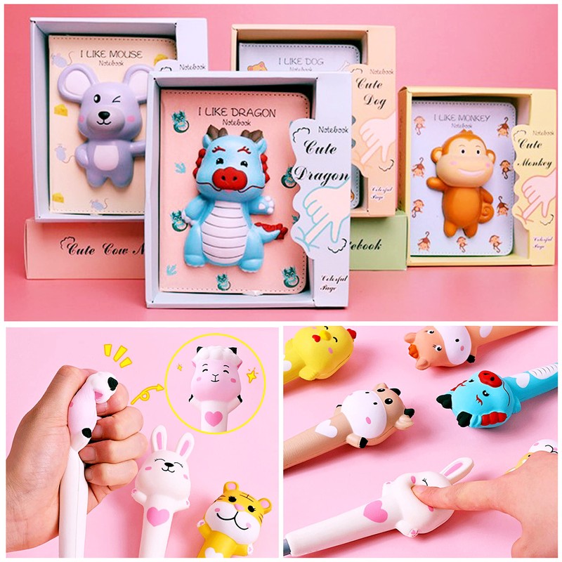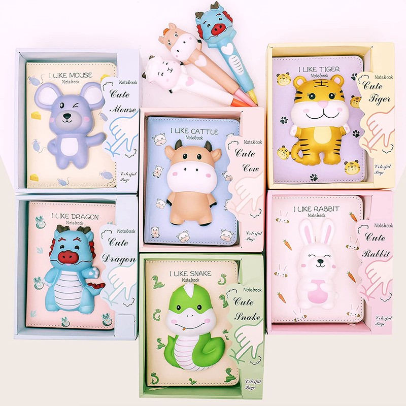 Cian Notebook with Squishy Foam Cute Cartoon Animal and Stress Relief Pen, 128 Pages Kawaii Stationery Journal Squishy Fidget 3D Diary Notebook for Kids Boys and Girls (12Pcs Pens)
