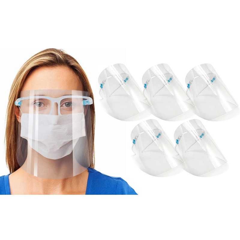 Ciana Safety Face Shields with Glasses Frames Ultra Clear Protective Full Face Shields to Protect Eyes Nose Mouth Anti-Fog Pet Plastic Sanitary Droplet Splash Guard (Safety Shield - (5-Pack))
