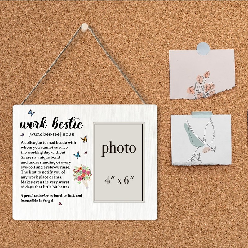 CIANMGD Work Bestie Gifts for Women Picture Frame, Work Bestie Gifts, Coworker Leaving Gifts for Women, Bestie Gifts for Women Wood Photo Frame, 4 x 6 Inch Photo
