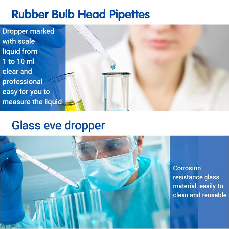 - 【Good Suction】Soft and durable blue rubber ball provides good suction to get the right amount of liquid into the dropper without dripping or spilling. Glass pipette 10ml, a good liquid transfer tool, perfect for collecting and dispensing liquids.