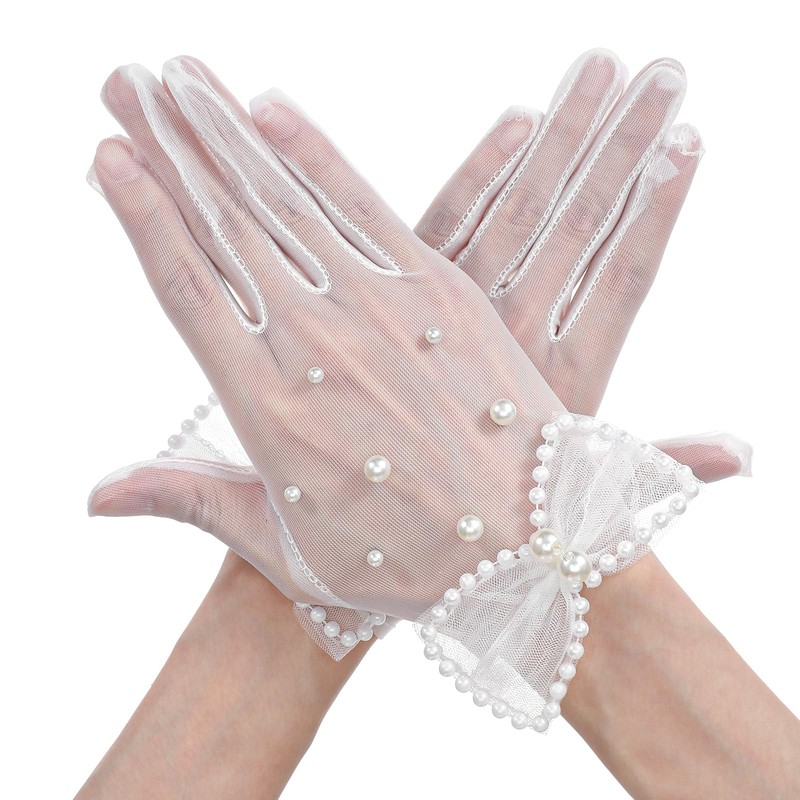 - Refined elegance: the short white tulle gloves have a bow and a pearl design that makes the gloves look more elegant and elegant, perfect for the festive occasion of a wedding. Pearl gloves look more elegant with your wedding dress