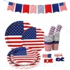 Cibeat 141 PCS American Flag Patriotic Party Supplies, 4th of July Party Disposable Paper Plates and Napkins Set, Independence Day Veterans Day Balloons Decorations, Serve 25