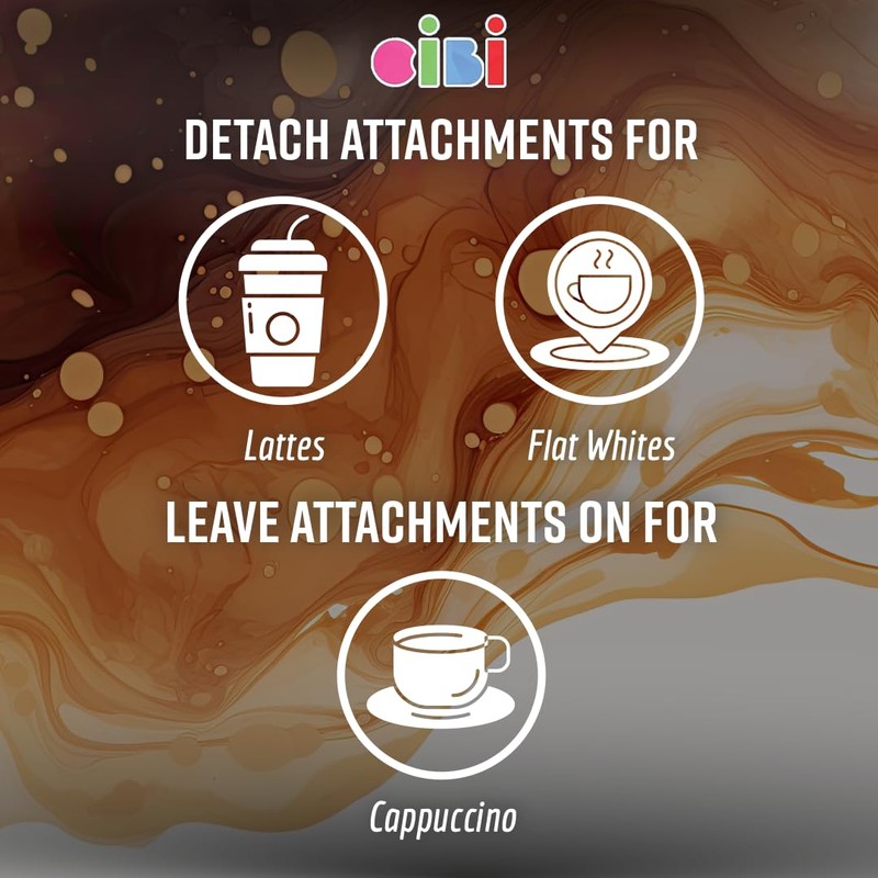 - 【Operation】 Designed for easy frothing. Simply detach the coiled attachment on the whisk to create smooth milk, perfect for a latte or leave both attachments installed for a dense, frothy cappucino.