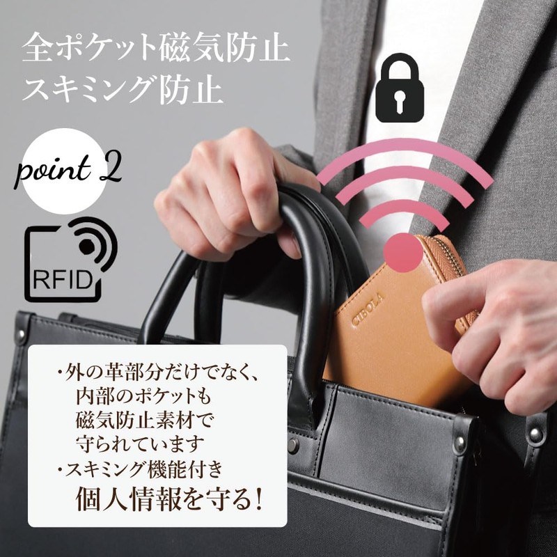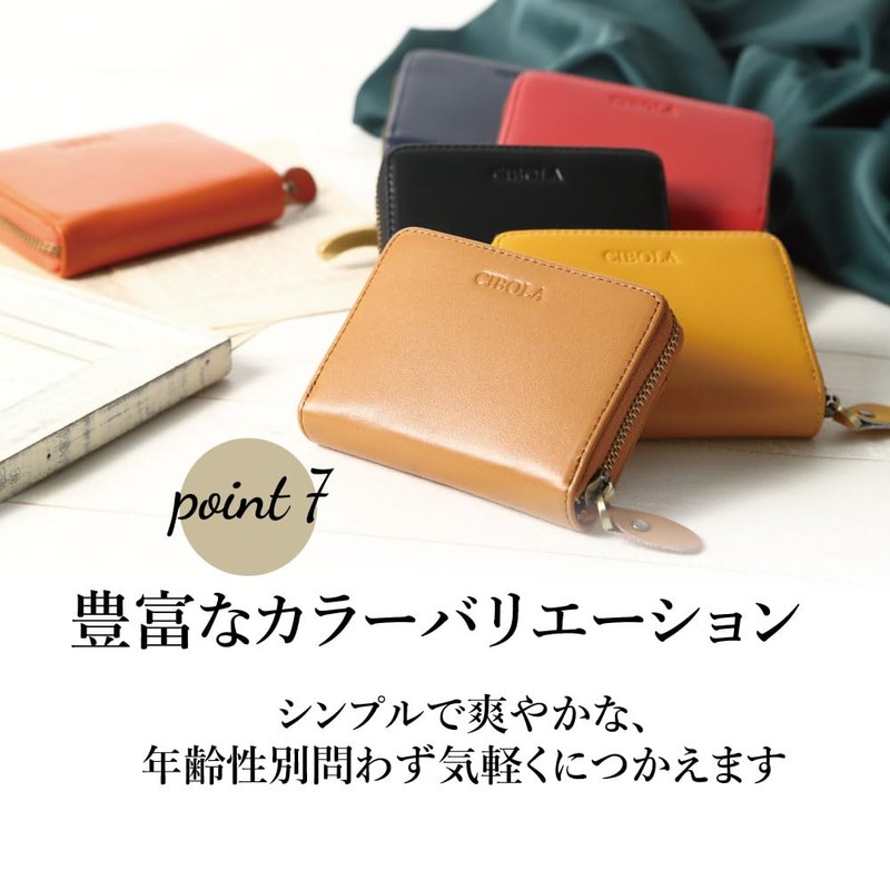 CIBOLA Premium Cowhide Leather Mini Wallet, Women's, Men's, Genuine Leather, Wallet, Compact, Wallet, Card Case, Commuter Holder, Small Wallet, Coin Purse, Anti-Skimming, RFID Card Slot, Round Zipper,