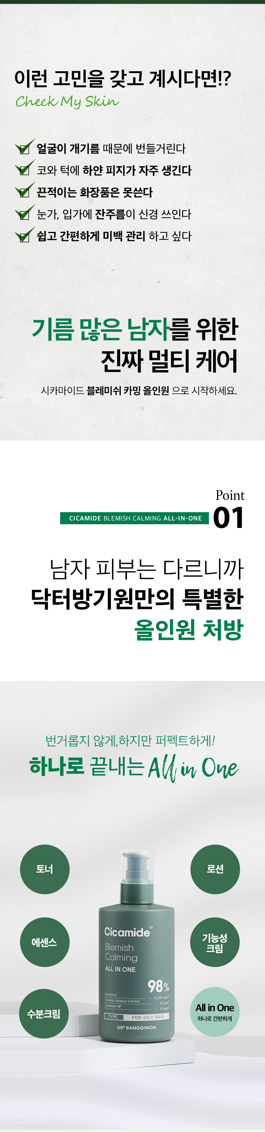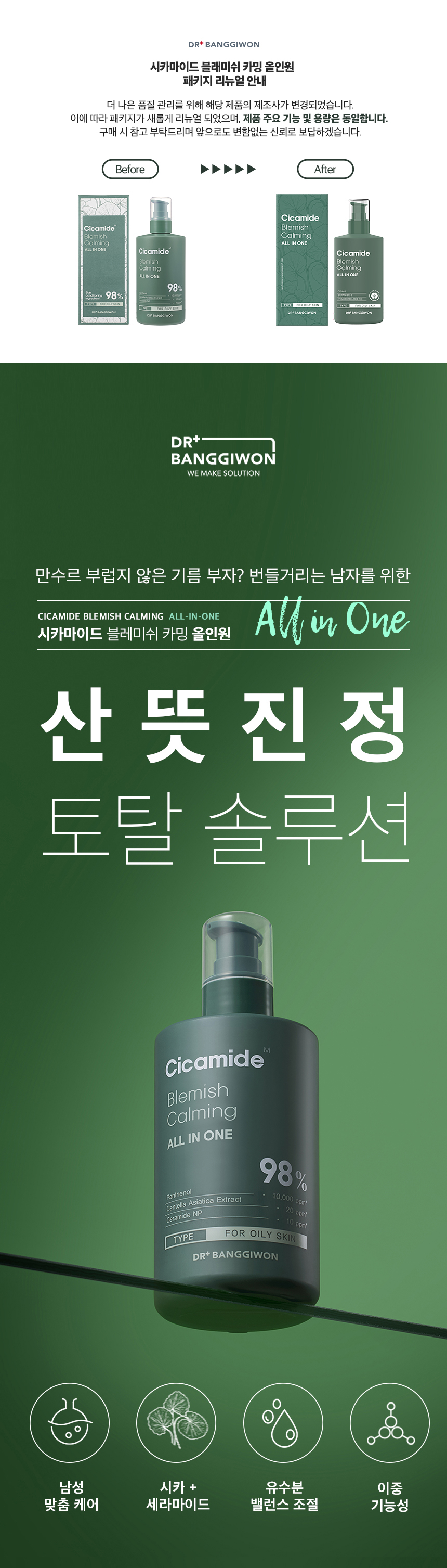 Cicamide Blemish Calming All-in-One/Men/Oily Skin 300ml + Wrap Shampoo 6ml (2 pouches)