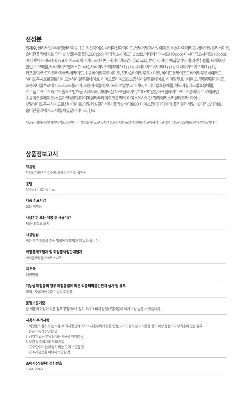 시카마이드 블레미쉬 카밍 올인원남성지성피부300ml+랩샴푸6ml파우치2종