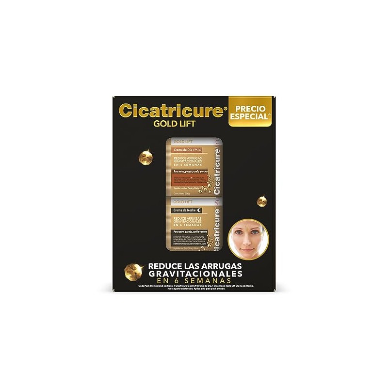 Descubre la innovadora solución de Cicatricure para el cuidado facial con el exclusivo 2 Pack Gold Lift, que incluye una Crema de Día FPS 30 y una Crema de Noche, diseñadas para transformar tu rutina de belleza. Este dúo excepcional está formulado para reducir las arrugas gravitacionales, rellenar surcos y proporcionar un notable efecto lifting, devolviendo a tu piel la firmeza y elasticidad perdidas con el paso del tiempo. La Crema de Día FPS 30 no solo protege tu piel de los dañinos rayos UV, sino que también actúa como una potente crema antiarrugas, ideal para mujeres que buscan mantener su piel joven y radiante. Por otro lado, la Crema de Noche trabaja intensamente mientras duermes, asegurando que te despiertes con una piel visiblemente más suave y rejuvenecida.