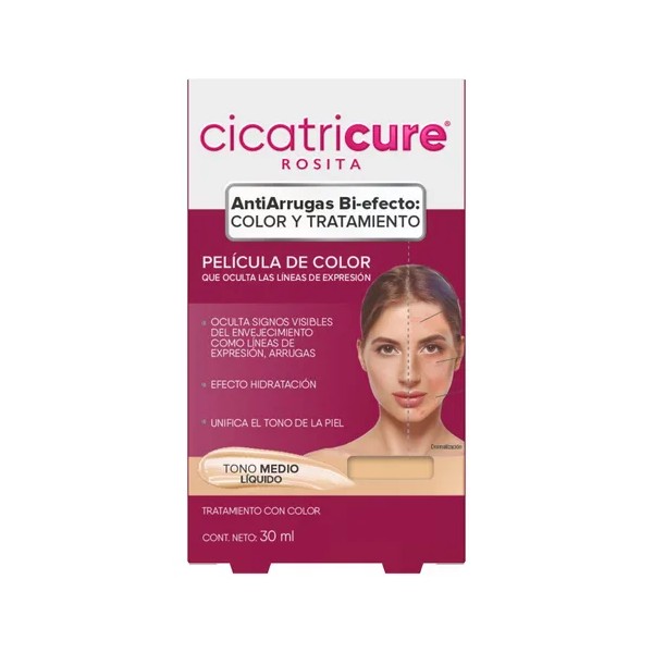 Cicatricure Maquillaje Líquido. Tono Medio, Contenido 30ml.