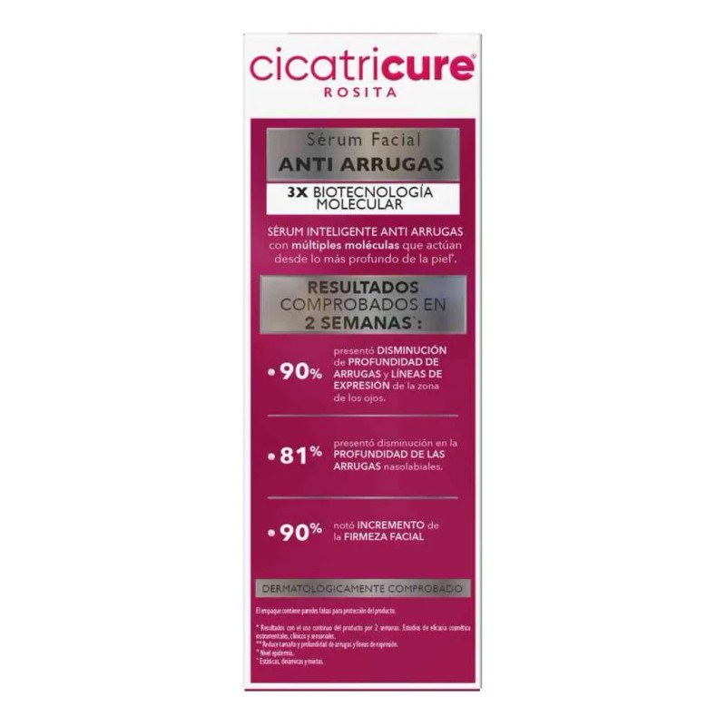 Descripción Limpia: Cicatricure Rosita Sérum Facial Anti Arrugas es un sérum inteligente con múltiples moléculas que actúan desde lo más profundo de la piel.