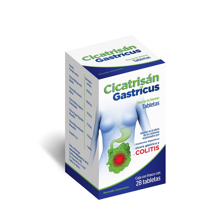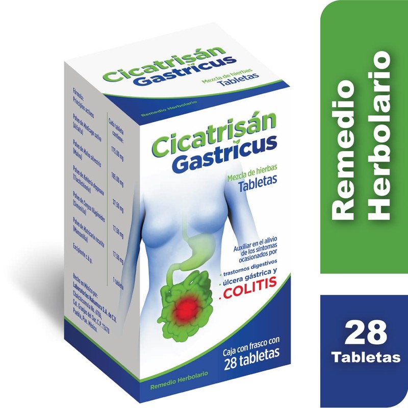 Cicatrisan Gastricus. Auxiliar en problemas digestivos, úlcera y colitis. 1 frasco 28 tabletas