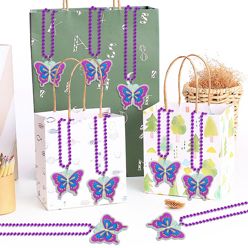 CiciBear 24 Pack Butterfly Necklace Party Favors with Mardi Gras Beads for Girls Baby Shower First Birthday Party Favors, Home Decorations, Festivals, Wedding,Birthday Celebrations