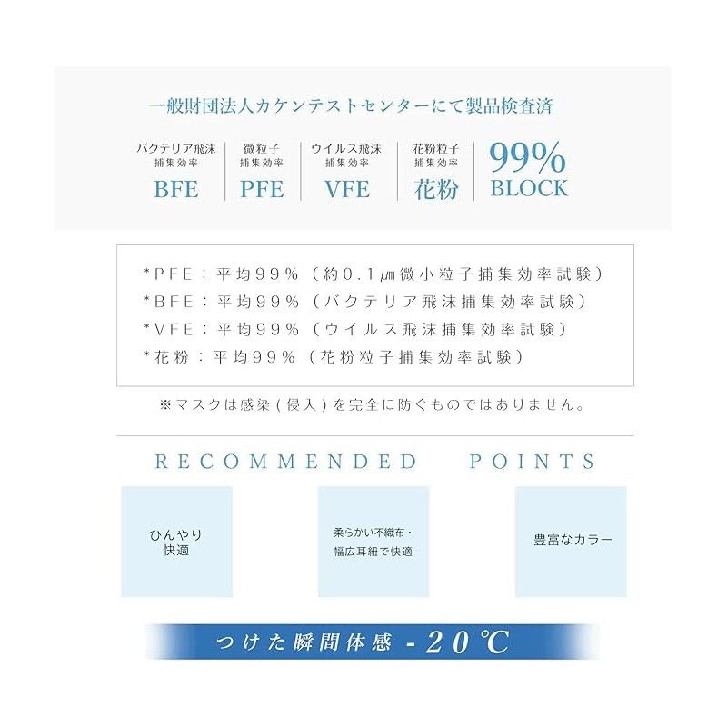 - 不織布と不織布の間にメルトブローン不織布を挟んでおり、99.9%カットを実現。