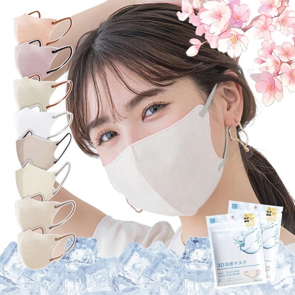 [kakaden] シシベラマスク cicibella 冷感マスク 不織布 3dマスク バイカラーマスク Lサイズ 20枚入 花粉対策マスク 不織布 小さめ 使い捨てマスク 息しやすい 涼しい 冷感 丸顔 (20, 冷感Lサイズ-ホワイト)