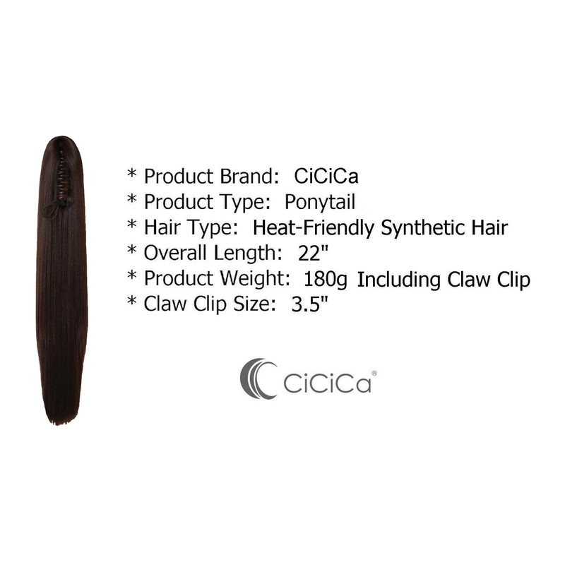 CiCiCa-“PT06”, Ponytail Extensions, Dark Brown Ponytail, 22 Inches Long Ponytail, Straight Ponytail, Pony Tails Hair Extensions, Claw Clip Extension, Drawstring Pony Tails, Heat-Resistant Synthetic Clip in Ponytail Extensions.