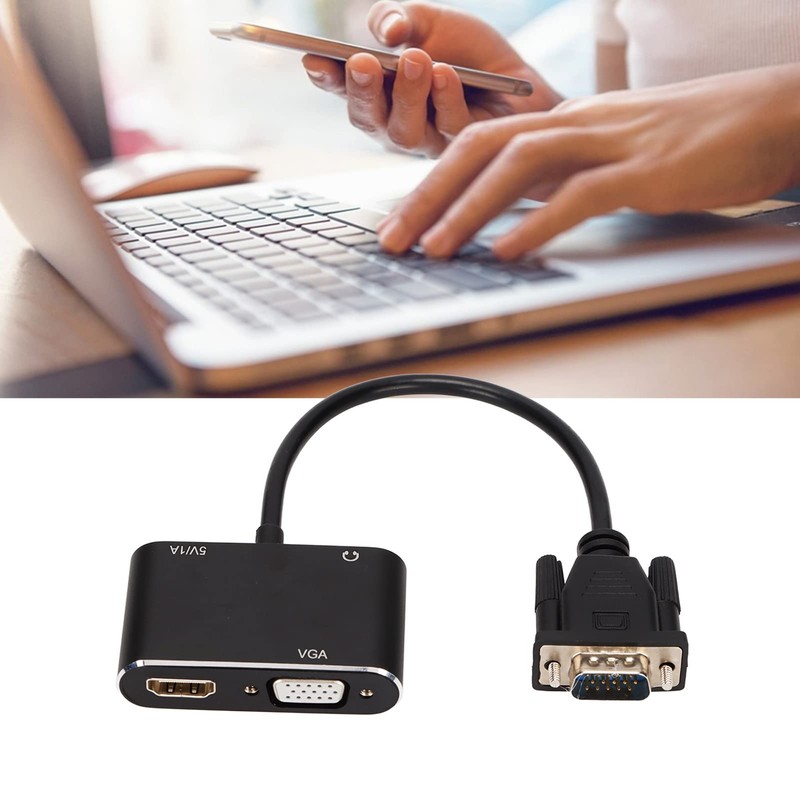 ciciglow VGA to VGA HDMI Adapter, 2 in 1 Splitter VGA Adapter High Resolution Stable Computer Accessories Converter For Connecting Speakers