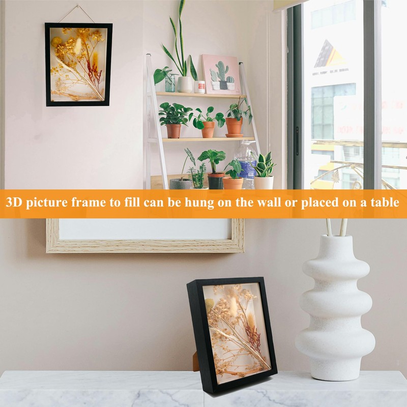 • Easy to install: simply break off the hooks on the back of the frame, remove the wooden back panel, take out the cardboard and put the items you want to decorate in. Picture frame 3D for filling can be hung on the wall or placed on a table.