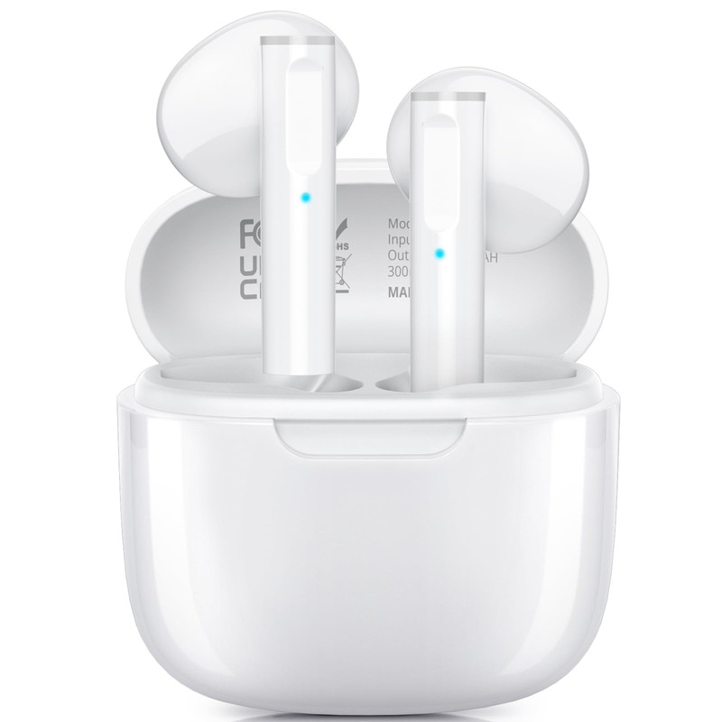 - 46H Ultra Long Playback Time The earbuds with a capacity of 50mAh can be used continuously for up to 6 hours, and the 300mAh housing provides additional 3.5 full charges. Bluetooth headphones in ear up to 6-8 hours of playing time with one charge and via the charging box with several additional charges, up to 40 hours of playtime possible. The charging case has a USB-C fast charging function and can be fully charged in 1.5 hours