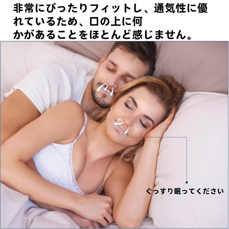 - 肌に優しい安心素材:口呼吸防止テープ使用されているのは親肌性ゾルです.粘着力が素晴らしいのに肌荒れしない。残留がなく肌を傷つけずアレルギーになりにくい。柔らかく通気性に優れ、長時間使用しても唇が赤くなったり痛くなったりしません