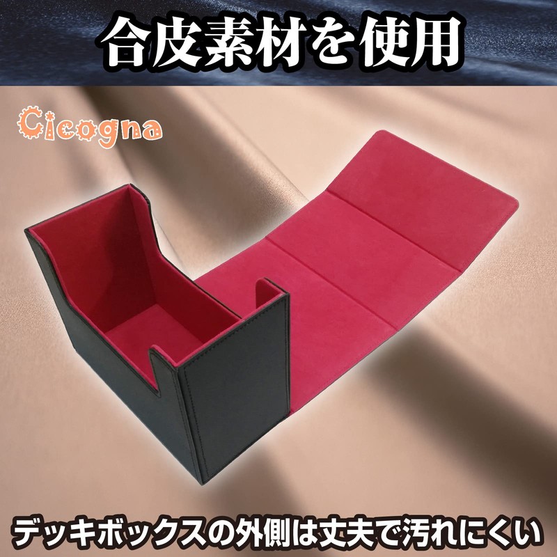 - The exterior of the deck box is made of durable and stain resistant synthetic leather material that protects your valuable cards from external impact. Meanwhile, the interior is made of soft nylon material that prevents scratches on the cards. The magnetic lid opens and closes smoothly, making it easy to put in and take out, and the sound of "snap" is comfortable