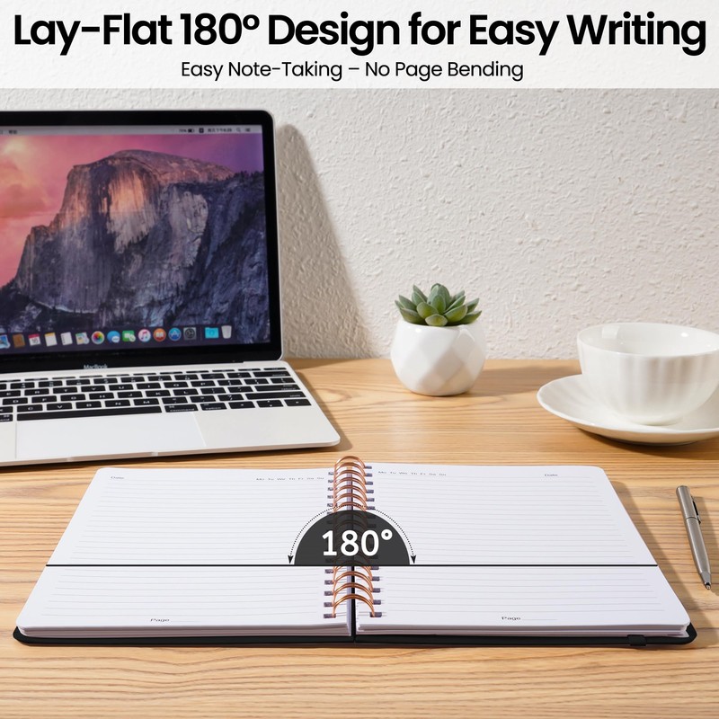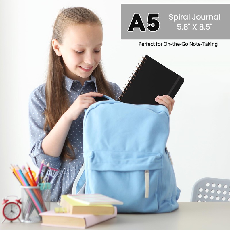 • HARDCOVER SPIRAL JOURNAL: This medium 5.9 x 8.5-inch spiral notebook features a durable hardcover that provides excellent protection and a professional look. It includes an elastic closure band to keep your notes secure and an inner expandable pocket for storing loose papers or small essentials. With 140 pages of high-quality paper, it’s perfect for journaling, note-taking, or daily planning.