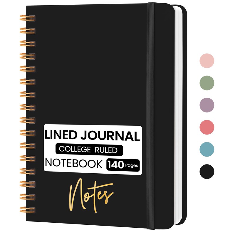 CICPAP Lined Spiral Journal Notebook, A5 College Ruled Notebook for Journaling, Note-Taking, and Daily Planning, Durable Hardcover with an Elegant Design, Black