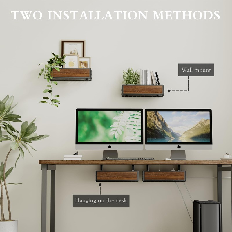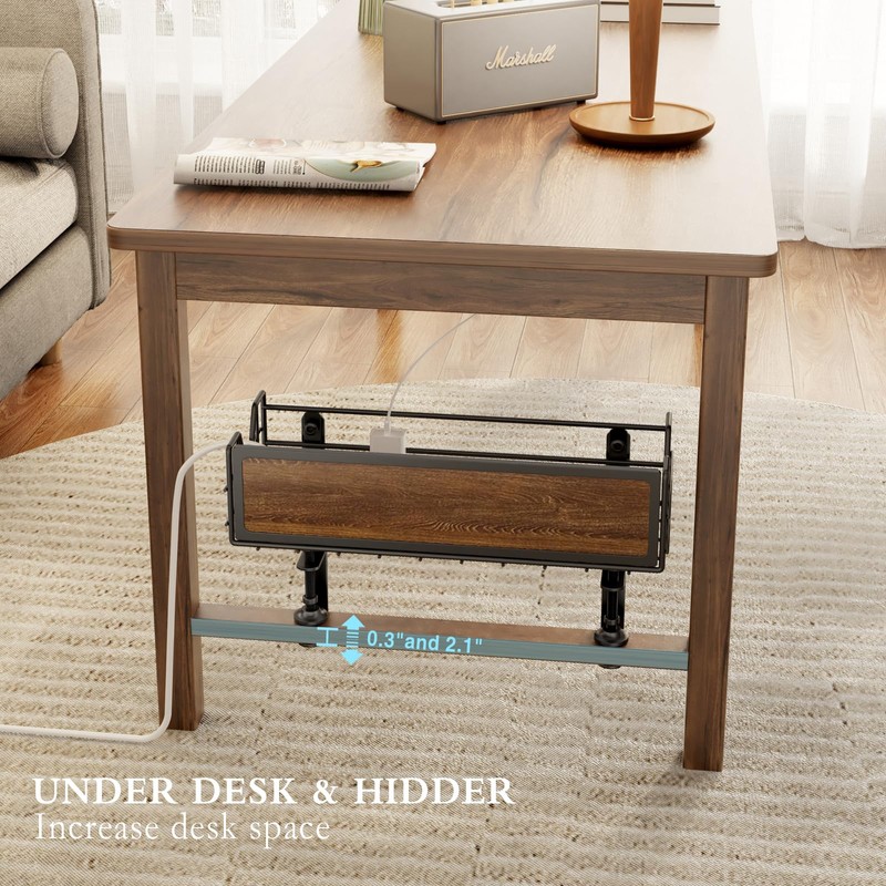 - 【𝐏𝐫𝐞𝐦𝐢𝐮𝐦 𝐌𝐚𝐭𝐞𝐫𝐢𝐚𝐥 & 𝐑𝐮𝐬𝐭𝐢𝐜 𝐬𝐭𝐲𝐥𝐞】Our cord organizer for desk is made of high-quality carbon steel and iron wire structure, which can bear a weight of 15 pounds, is strong, and is not easy to deform. The iron wire structure provides good heat dissipation. The front uses a piece of rustic wood, which perfectly blends with your wooden desk style and increases the beauty. (Tips: Due to the wood material, the patterns are not exactly the same)