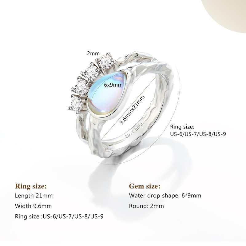 Cicy Bell Womens Platinum Plated Moonstone Cubic Zirconia Delicate Eternity Cut Teardrop Texture Rings for Gifts Size 6-9
