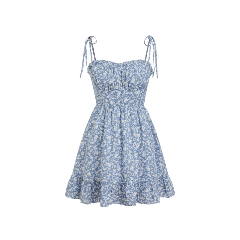 CIDER Women Floral Mini Dress Summer Boho Dress Flowy A Line Casual Sundress Blue