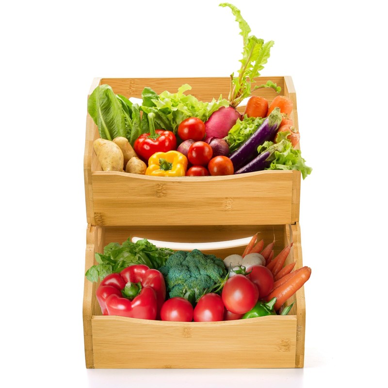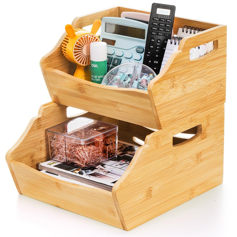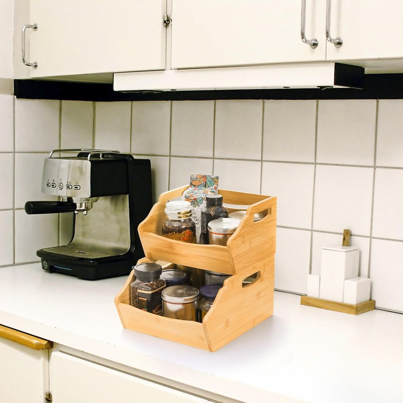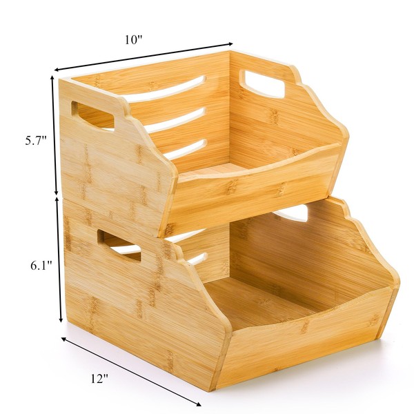 Cididu Cididu 2 Pack Bamboo Stackable Storage Bin, Countertop Open Front Stacking Bins, 2 Tier Organize Basket Box with Handle, Food Fruit Container for Cabinet, Kitchen, Studio, Office