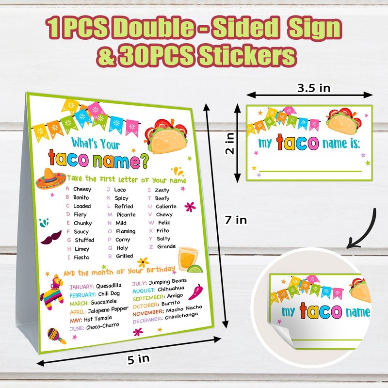 Cidobi What is Your Taco Name Game, 1 Taco Name Game Double Sided Sign, 30 Ta...