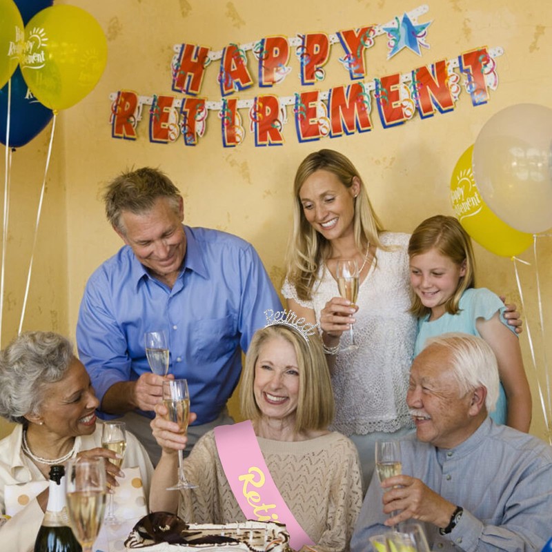 - The Perfect Retirement Party Decorations Women: "Officially Retired" sash + rhinestone retired tiara. Perfect for any woman embracing her new chapter, this set is designed to make her feel like the queen she truly is on her Retirement Party.